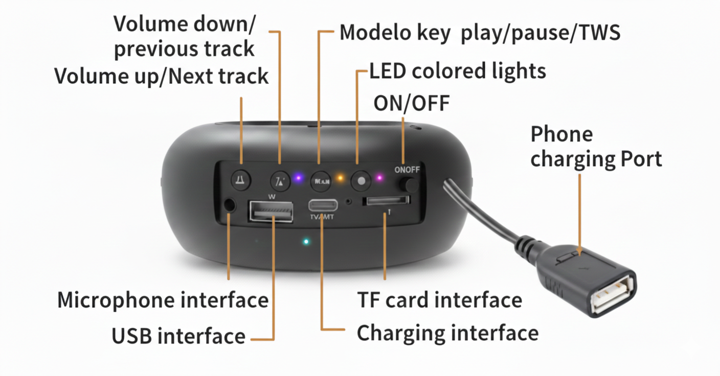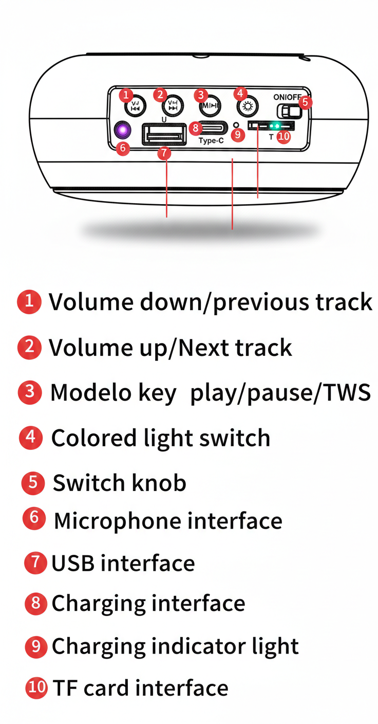 Mic Portable Enjoy music anywhere with this 10W portable speaker featuring RGB LED lights, rechargeable battery, and convenient backpack